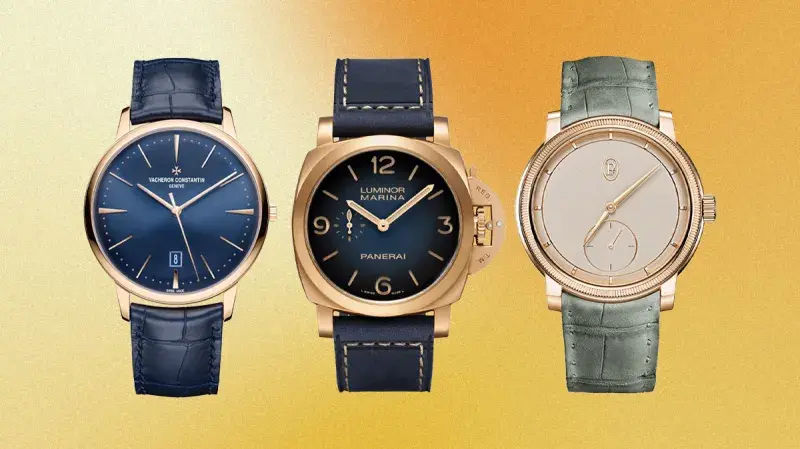 首次采用青铜材质的Luminor Marina,灵感来自60年代为意大利海军打造的腕表。青铜随时间氧化呈现独特绿棕色调,深蓝表盘与表带,蓝宝石透明底盖,防水约1600英尺,适合户外探险者。